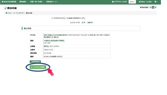 - 「オーディオブックを聴く」ボタンをおす。